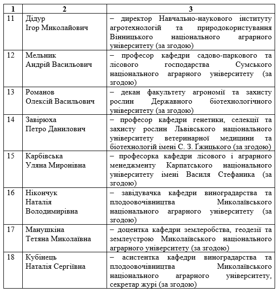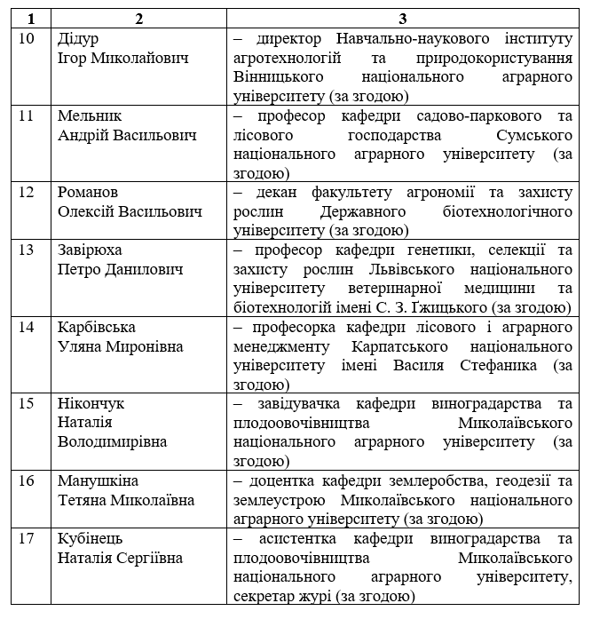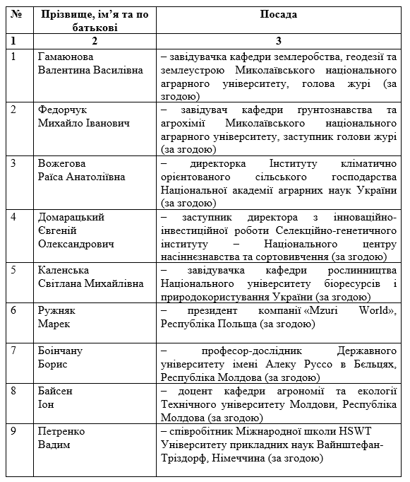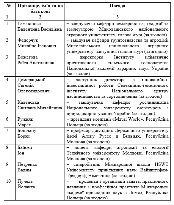 Склад журі Міжнародного студентського професійного творчого конкурсу «Аграрні науки та продовольство»з агрономії